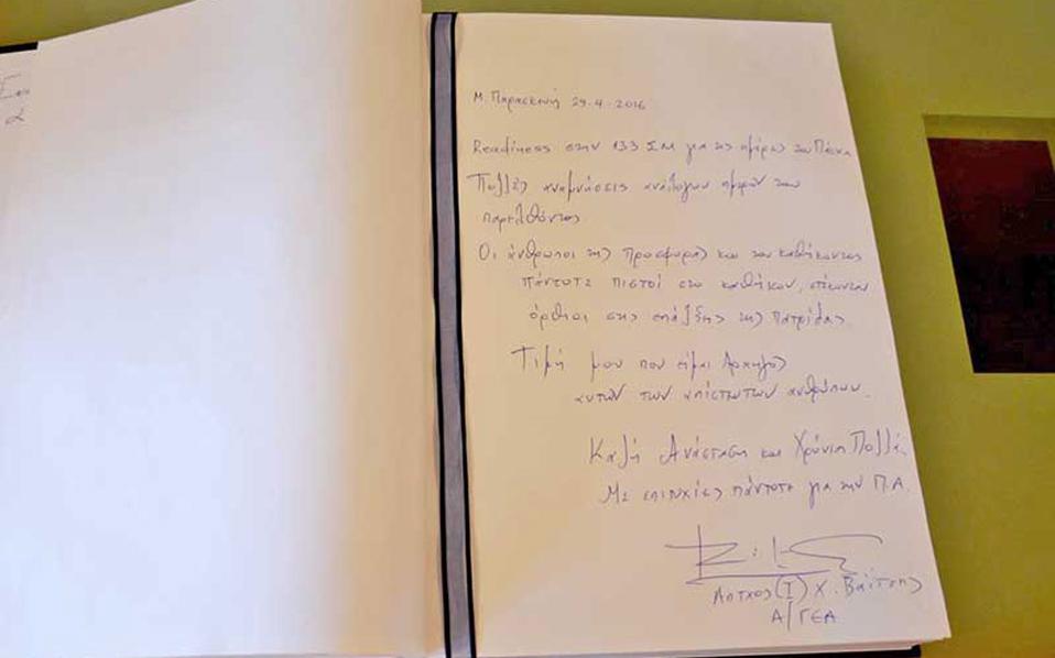 Το μήνυμά του στο βιβλίο επισκεπτών έχει ως εξής: